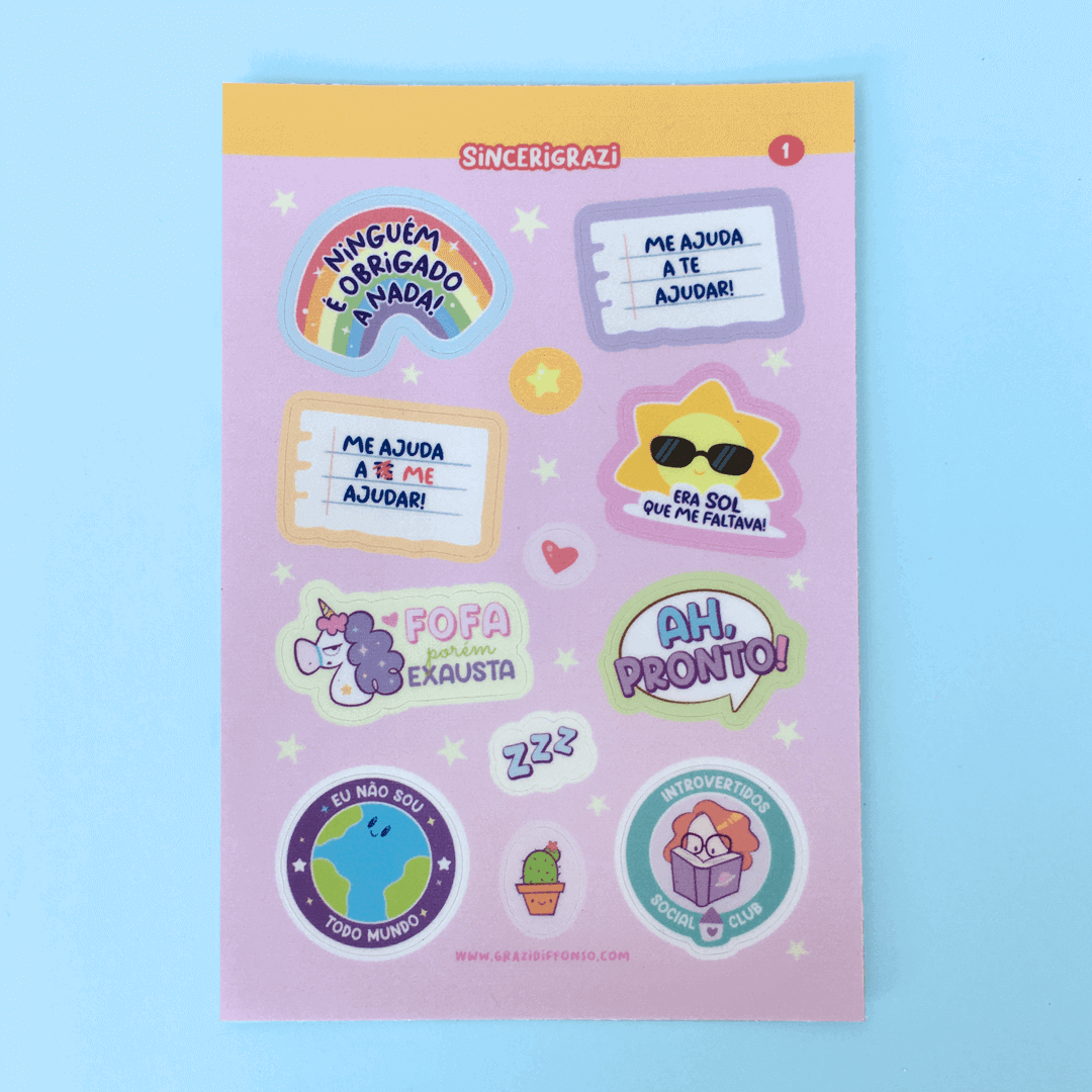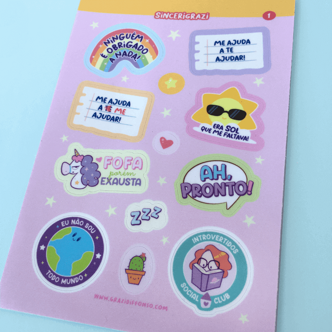 Cartela de adesivos em vinil.