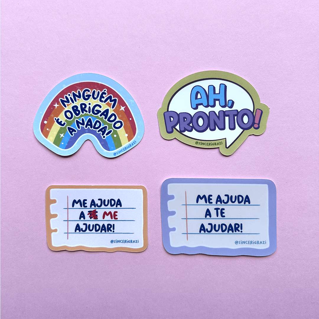 • 3 adesivos com laminação fosca e 1 com laminação holográfica